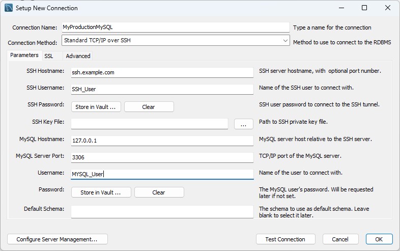 localhost or 127.0.0.1 if MySQL is on the same server as SSH)3306)